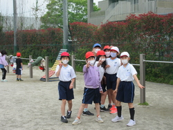 ペアの1年生を確認した6年生は、自己紹介のお手本を示し、