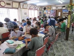 1日目。午前は体験活動でした。日興彫、ろうけつ染め、写経・座禅の3つのグループに分かれ、普段できない体験に真剣に取り組んでいました。