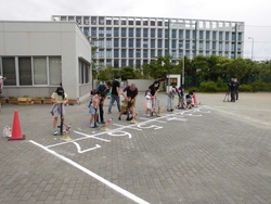 初めに、体育館で、作り方の説明を受けた後、各自、「自分のペットボトルロケット」を作りました。よく飛ぶロケットを目指して、皆真剣に取り組んでいました。中でも、お父さんお母さんが熱を入れて作っている姿が印象的でした。親子で一緒に物づくりを楽しむことのできた貴重な時間となりました。