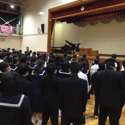 終業式では、4年ぶり?に、代表生徒による指揮と伴奏で校歌斉唱を行いました。校歌を歌いながら「やっぱり生徒の指揮と伴奏で歌う校歌がいいなぁ」とつくづく感じ、それだけで込み上げてくるものがありました。そして、2学期の堀中生たちのたくさんの頑張りや成果をたたえるとともに、3学期に期待することを伝えました。