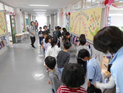 4月9日(火)に入学した1年生は、学校での過ごし方を少しずづ学んでいます。教室の棚の使い方や、靴箱の使い方、手洗い場の使い方など、覚えることはたくさんあります。どれもみんなで生活していく上で大切なことですね。今週は学校になれるために、他の学年の児童よりも早く帰ります。下校は途中までみんなで一緒に帰ります。でも、児童育成クラブにいく人のほうが多くてびっくりしました。
