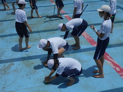 プールの中はもちろん、プールサイドの側溝や更衣室、シャワーなどそれぞれの分担場所を一生懸命きれいにしました。かなり汚れていたのですが、6年生の力でとてもきれいなプールに戻すことができました。これで思う存分プール学習ができますね。