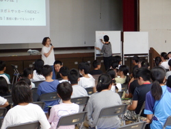 7月11日(木)、5年生の学年PTA活動として選択理論実践パートナーの大本一枝さんを講師に招き、「幸せを呼ぶ魔法の声かけプラスのことば」のテーマで講演会を実施しました。「あなたにとっていいなと思うもの、楽しいなからうれしいなからと感じるときはどんなときですか?」など、子ども達と双方向にやり取りしたり、寸劇をいれながらこんな場面ではどうしたらよいかを考えさせるなど、参加型の講演会であっという間に時間が過ぎていきました。この講演を通して、どんなプラスのことばをかければみんなが幸せになれるか考えることができたのではないでしょうか。