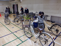 車いす体験では、ちょっとした下り坂でも乗っている人にとっては恐怖感を感じることがわかりました、また自転車が乱雑に置いてあると車いすの進行が困難であることも実感しました。