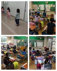 1年生は、初めて教室に入りました。ちょっぴり緊張していましたが、返事や挨拶の仕方、靴箱の使い方など学習しました。ソーシャルディスタンスを守って廊下を歩き、トイレの使い方も学びました。先生の方に、顔をむけて話を上手に聞いている1年生、明日も待ってます!