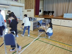 体育館のパイプ椅子の掃除