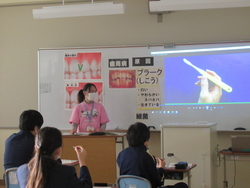 令和5年11月27日月曜日、1年生と特別支援学級E組を対象に「歯のすこやか教室」が開催されました。