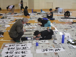 12月21日(木)に水桜会の方々2名を講師に招き、3,4年生が書初め練習会を行いました。